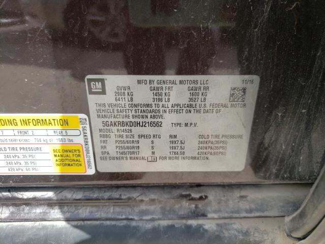 VIN : 5GAKRBKD0HJ216562