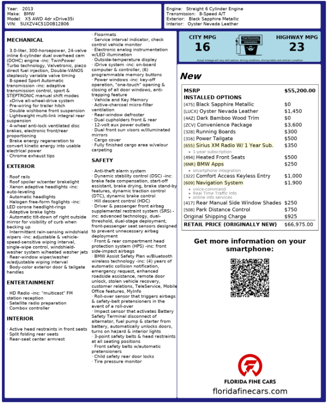 Key Features | Detailed Vehicle History Window Sticker | Other Window Sticker Monroney Labels |